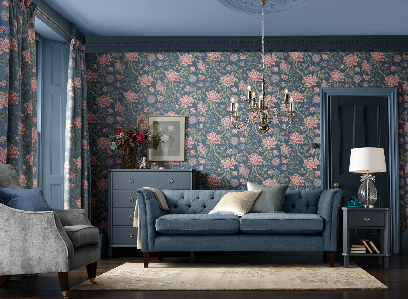 Laura Ashley Stannard Table Lamp Blue Ceramic With Shade