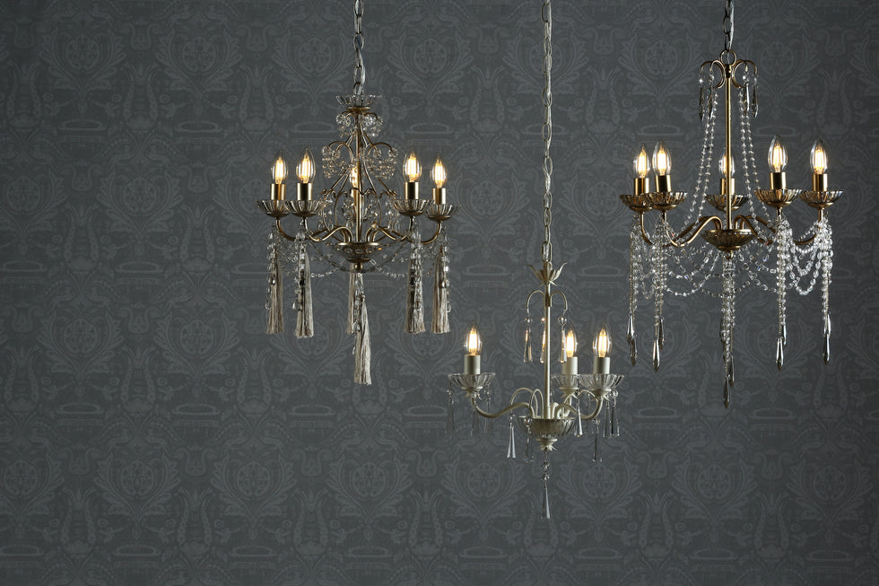 Laura Ashley Willow 3 Light Semi Flush Satin Champagne with Crystal Raindrops