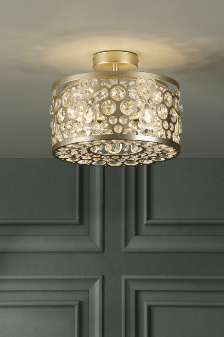 Laura Ashley Tilbrook 3 Light Flush Matt Champagne and Crystal