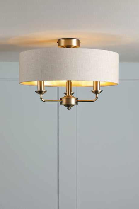Laura Ashley Sorrento 3 Light Semi-Flush Matt Antique Brass With Natural Shade