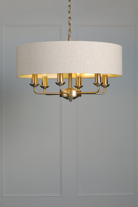 Laura Ashley Sorrento 6 Light Chandelier Matt Antique Brass With Natural Shade