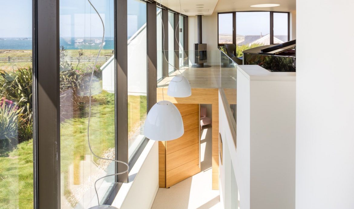 This private home in North Cornwall was conceived to make maximum use and benefit from the stunning views. Perched on a clifftop, the house is an earth covered home, allowing it to blend seamlessly into the landscape.