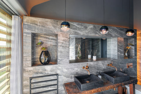 With the dramatic backdrop of Lake Windermere and Cumbria’s Lake District National Park, Grey Gables is a luxury holiday-home that offered Amos Lighting + Home the opportunity to work alongside one of Devon’s most well regarded interior designers, Cathryn Bishop of Plymouth based Cornish Interiors.