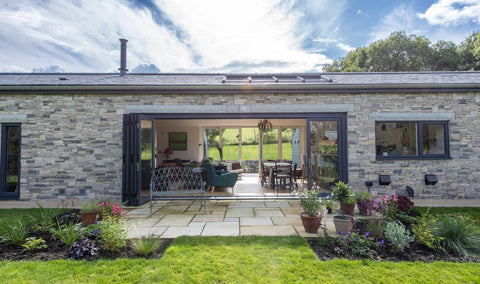 Nestled into the Dorset soil just outside Bridport, The Kiln, from first view, gives the impression of being a modest single story stone dwelling surrounded by neatly trimmed lawn.