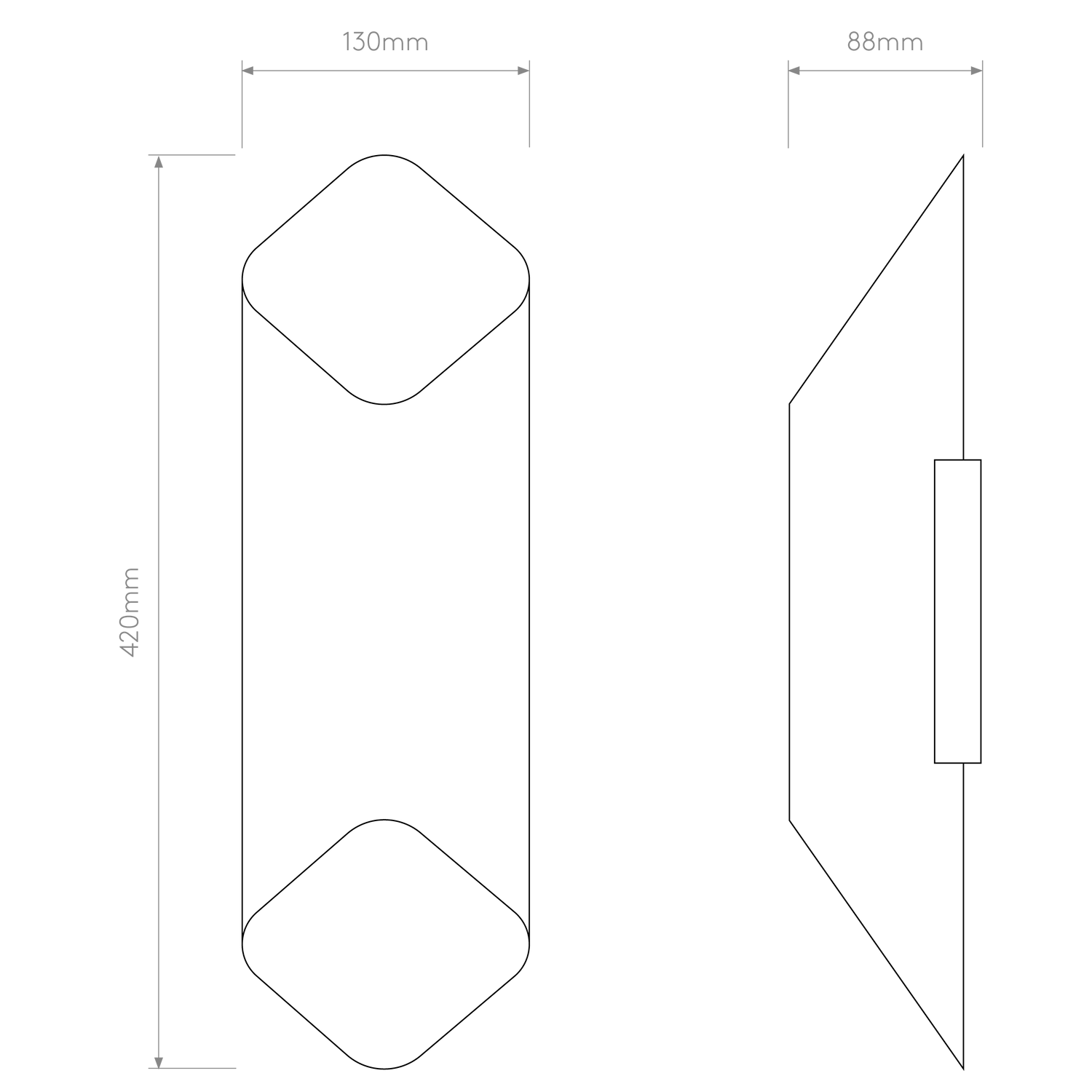 - Dimensions L x W x H: 88 x 130 x 420 mm