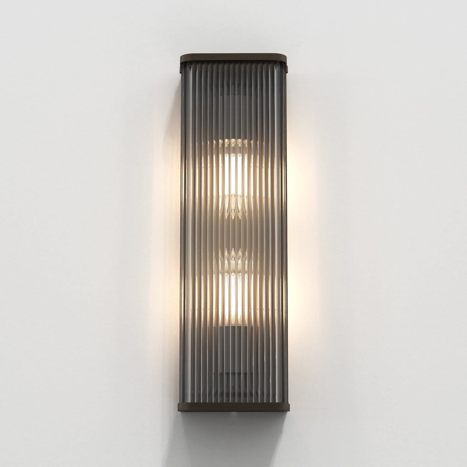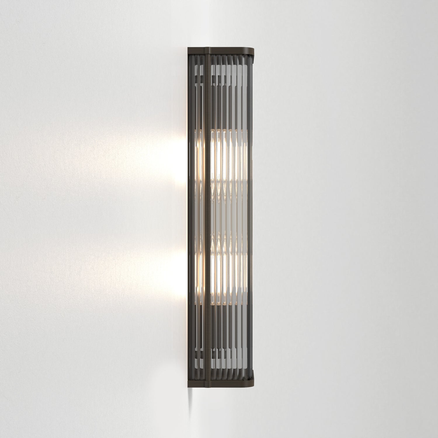 Inspired by Art Deco luminaires, the Avignon Square 500 wall light is large in scale adding instant drama and presence to a space. Tall and slender with a crisply defined profile, it features sparkling clear glass rods, die-cast bronze end caps and exudes ambient, glare-free illumination. Designed with hospitality settings in mind, the light fixes to the wall with a single discreet screw, so nothing distracts from its seamless look.