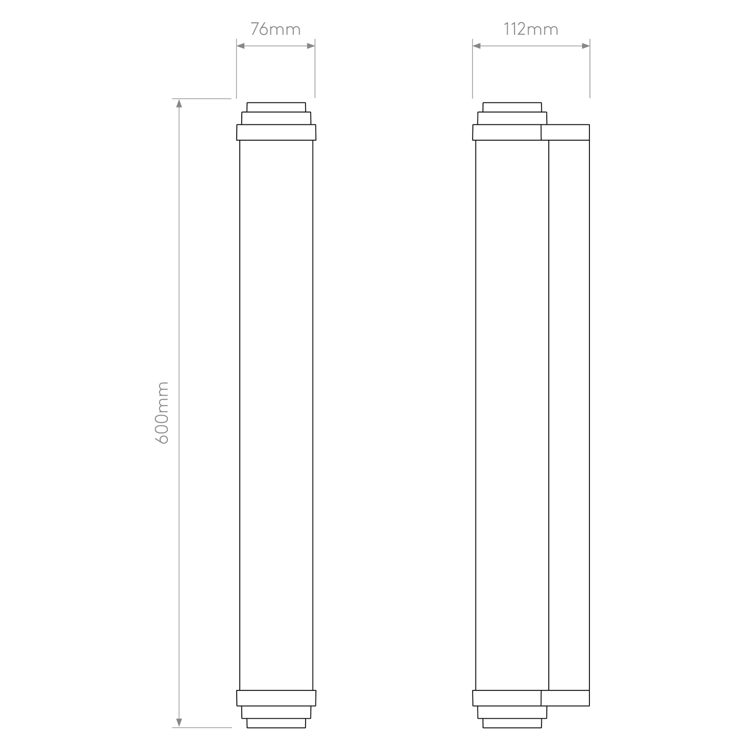 - Dimensions L x W x H: 112 x 76 x 600 mm