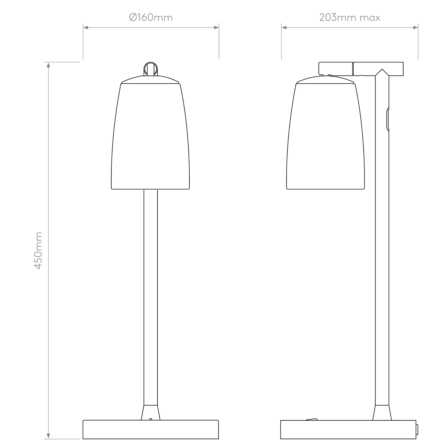• Dimensions L x W x H: 203 x 160 x 450 mm
