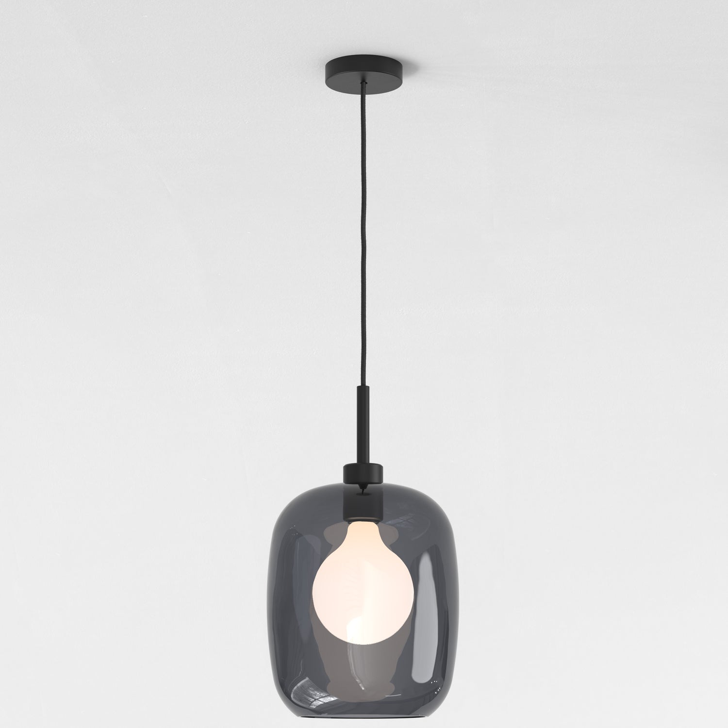 Crafted from hand-blown glass in a rich, sophisticated smoke hue, the Curve shade creates a relaxed feel and is perfect for hanging beside a bed in hotel guest rooms. Its unique elliptical form also looks striking when hung in clusters. Designed to be installed with an Astro Pendant Suspension Kit which is sold separately.