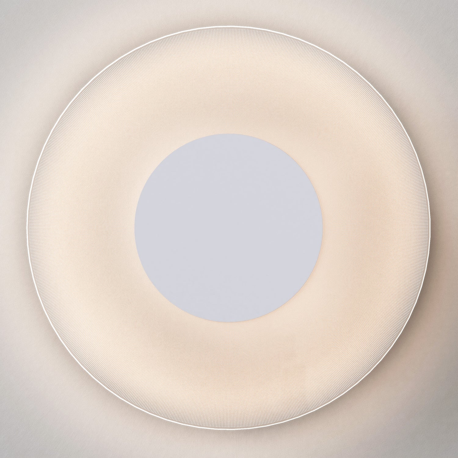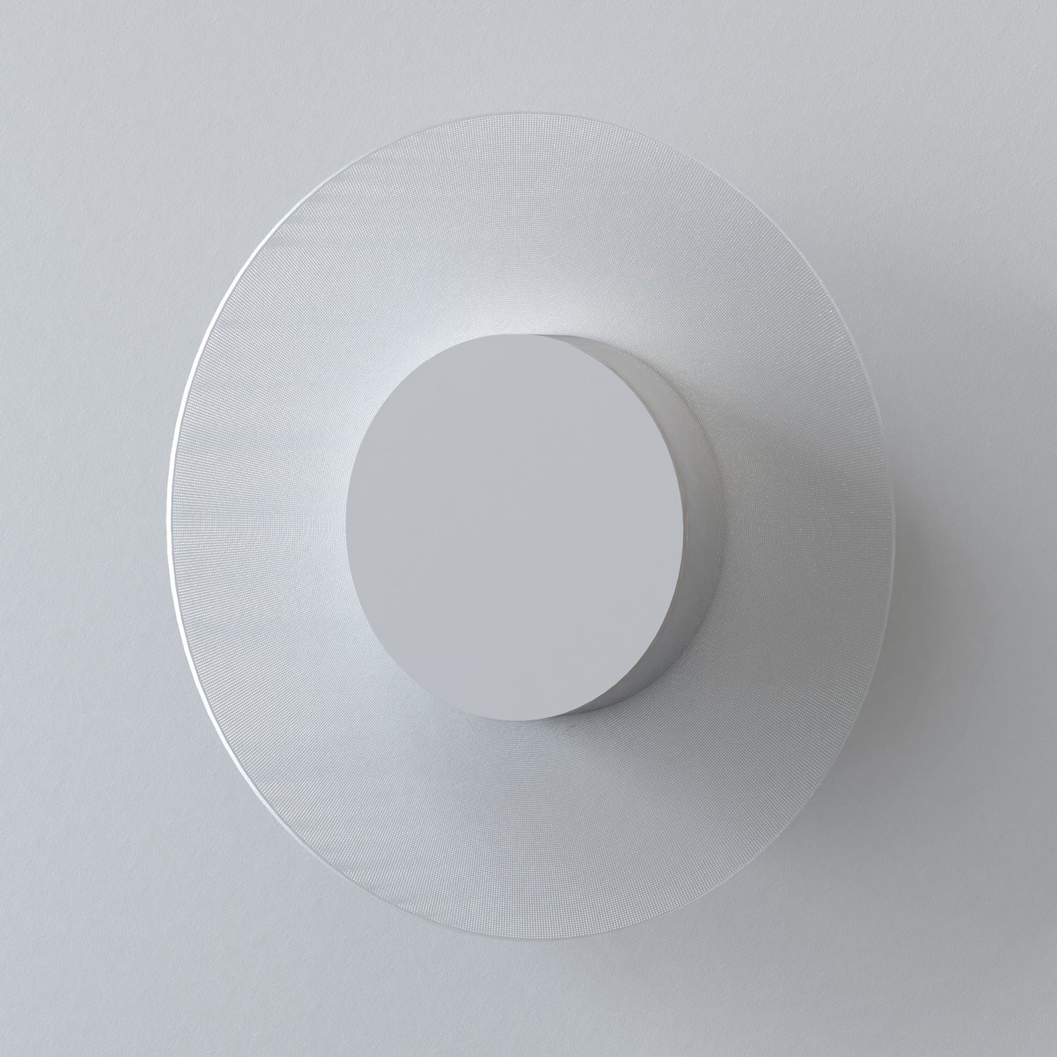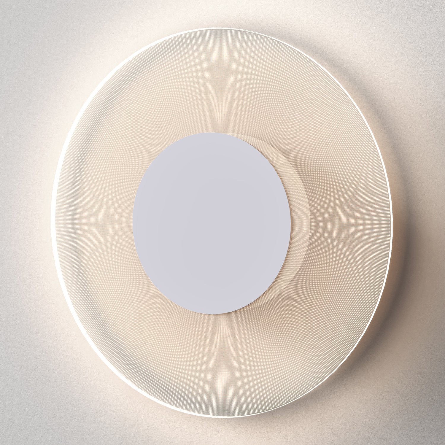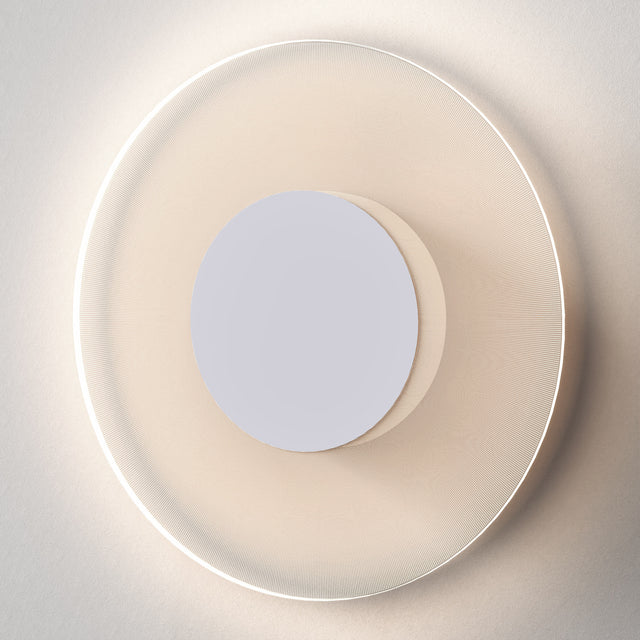 The Astro Lighting Halftone Wall Light celebrates simple, geometric design with a circular form and an etched pattern on translucent clear acrylic. Its unique construction allows the wall to remain visible both on and off, creating a sense of depth and subtlety in modern interiors.