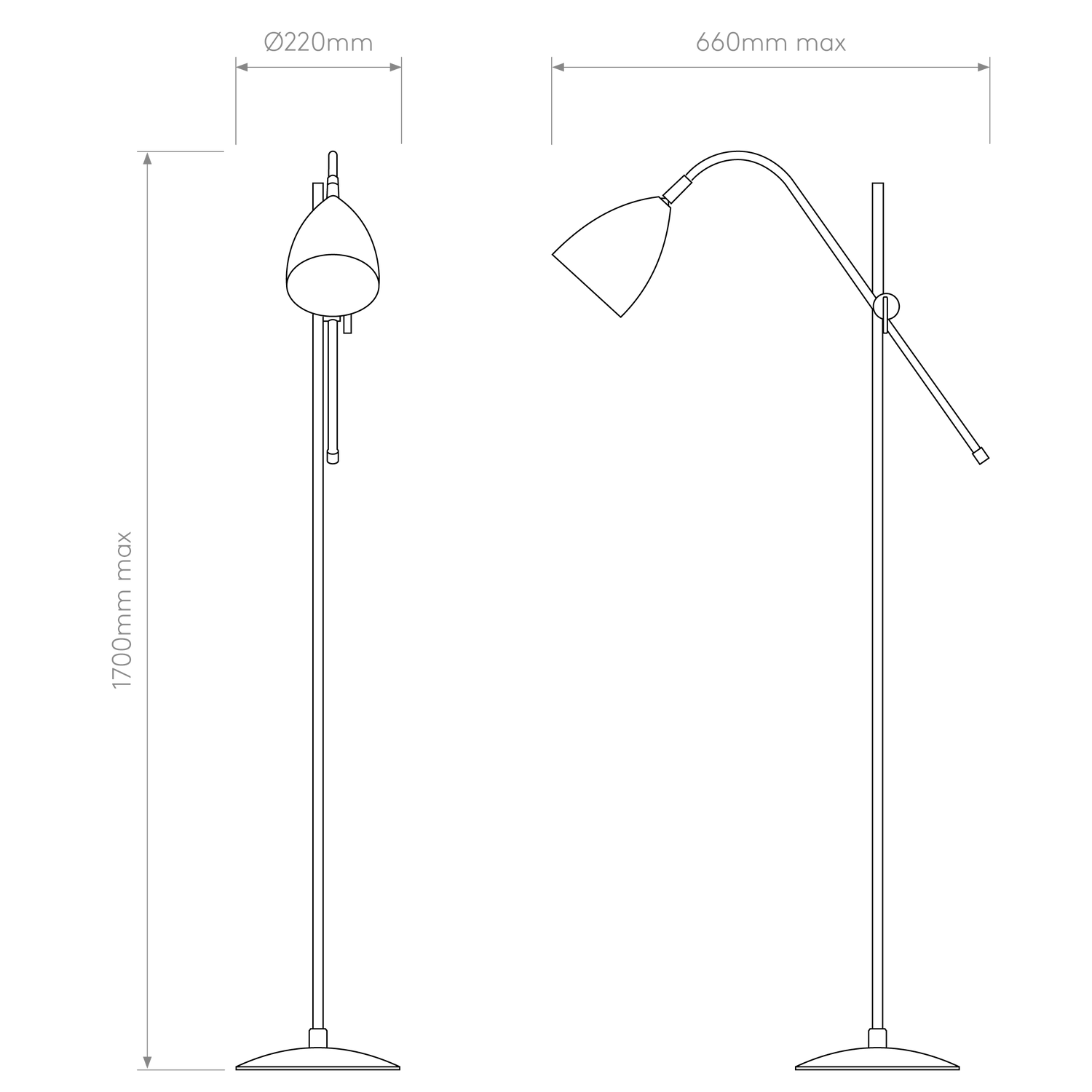 Crafted with high-quality materials and finished in Matt Black, the Joel floor lamp complements a variety of interior décor styles, from contemporary to industrial. Its adjustable head allows you to direct light precisely where needed, ensuring practical and flexible lighting for reading, working, or relaxing.