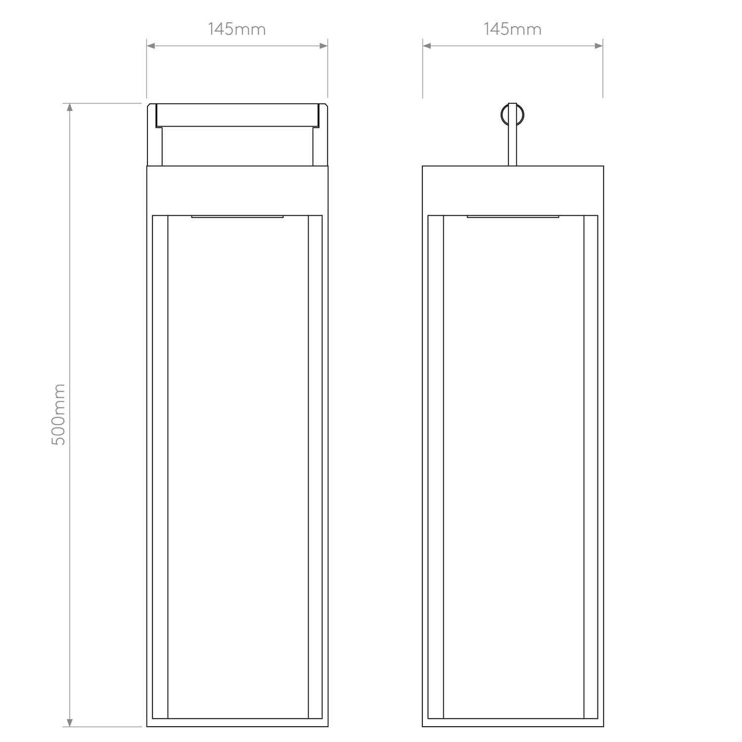 - Dimensions L x W x H: 145 x 145 x 500 mm