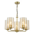 Dar Daylin 5 Light Pendant Satin Gold and Amber Ribbed Glass