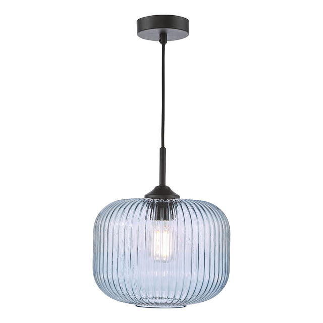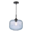 Dar Demarius Pendant Matt Black and Blue Ribbed Glass