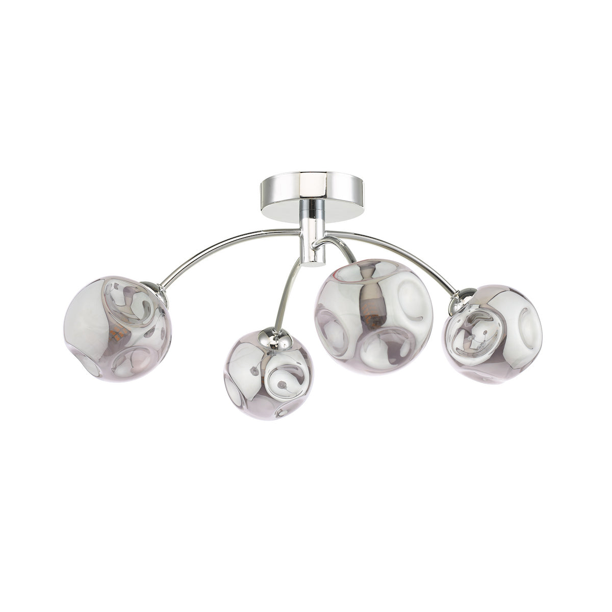 Dar Izzy 4 Light Semi Flush Polished Chrome With Closed Organic Smoked Glass