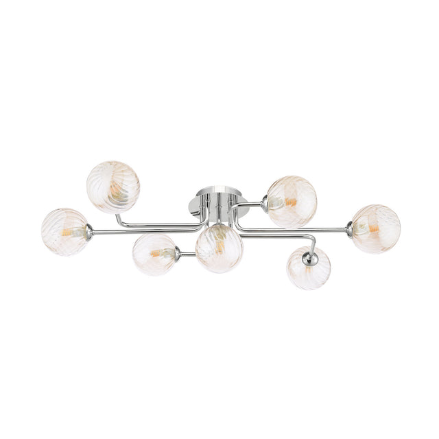 Dar Reyna 7lt Semi Flush Polished Chrome With Twisted Amber Glass