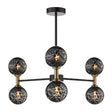 The Dar Takara 6 Light Semi-Flush features matt black and bronze finishes with unique black confetti glass shades, adding a touch of drama to your interiors.