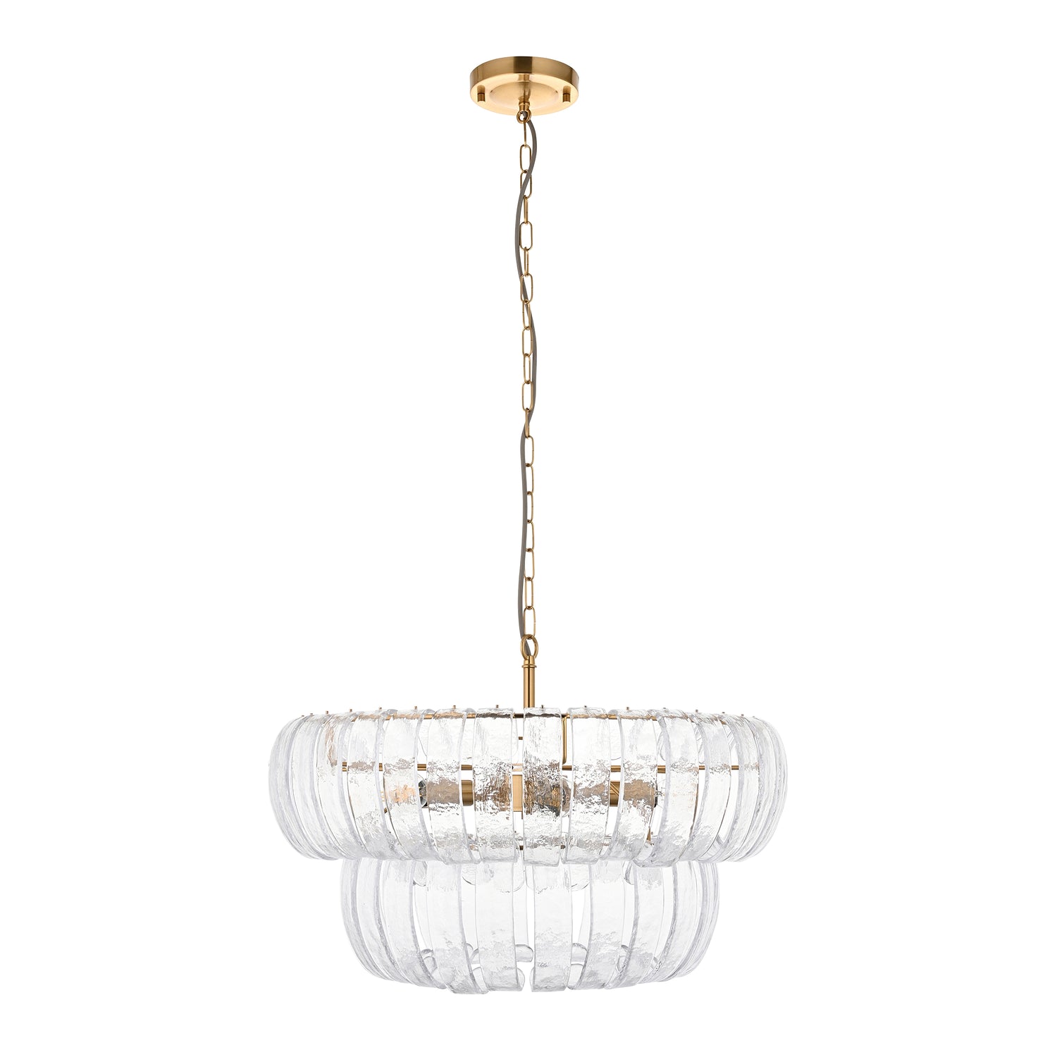 Endon Montrose 6lt Pendant Brushed aged brass plate & handmade clear textured glass