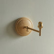 A natural Ash wood wall back with simple linear arm featuring an adjustable knuckle to fold and reposition the wall light. Perfect for bedsides, finished in brushed aged brass. Complete the look with one of our decorative fabric shades.
