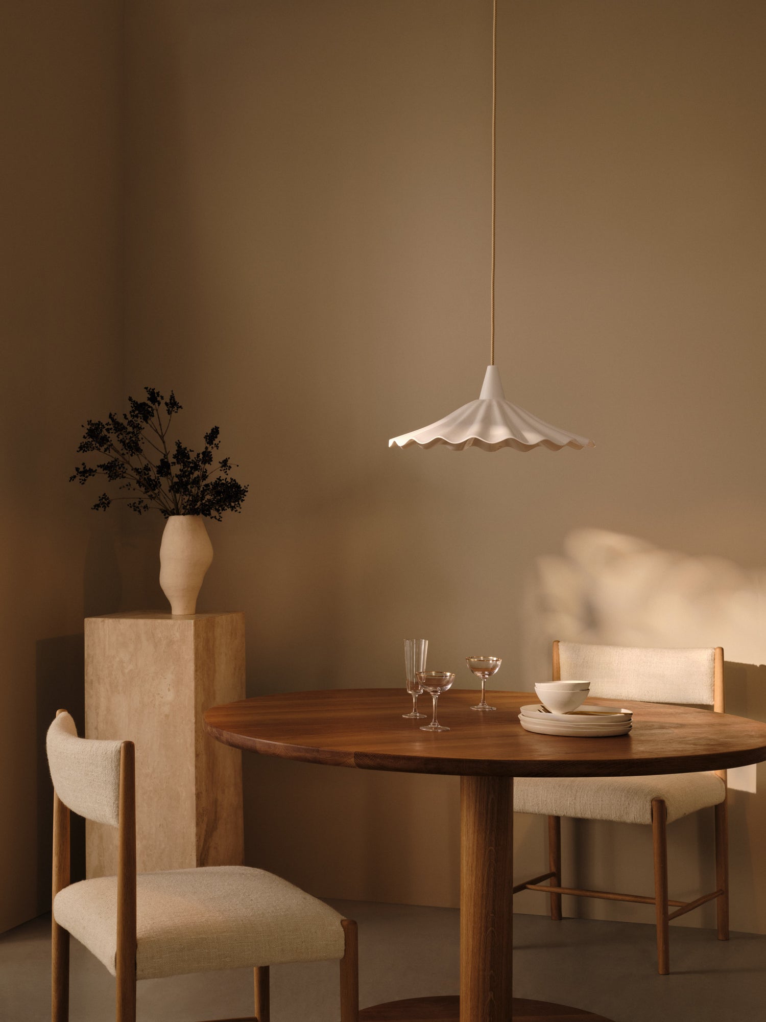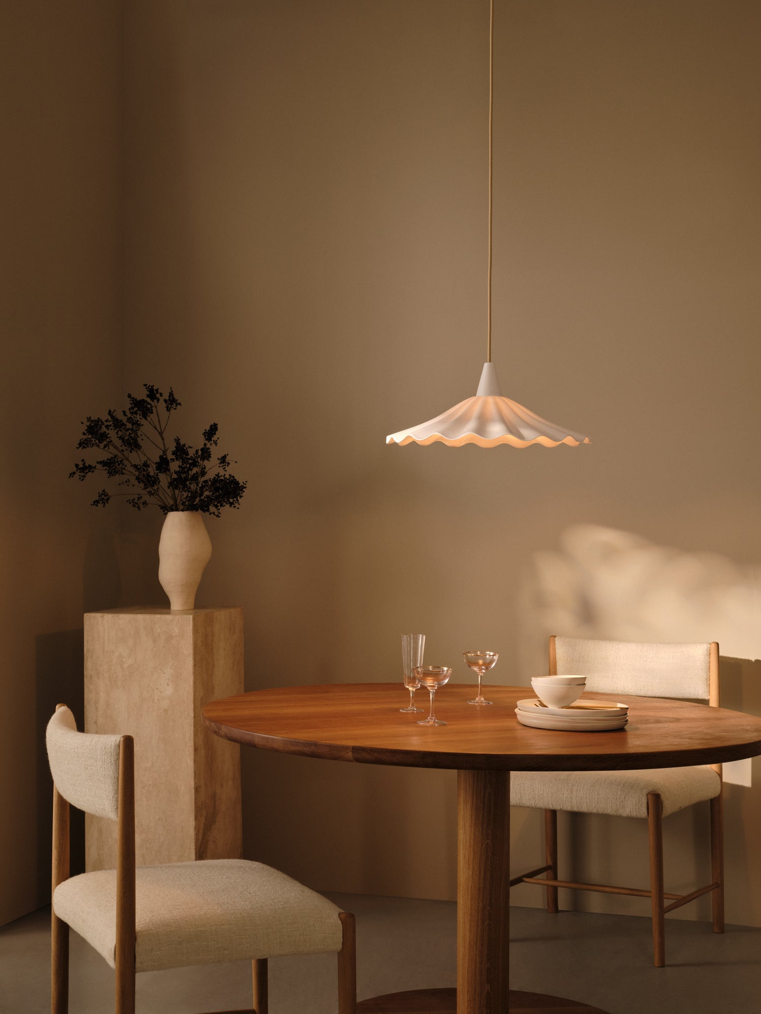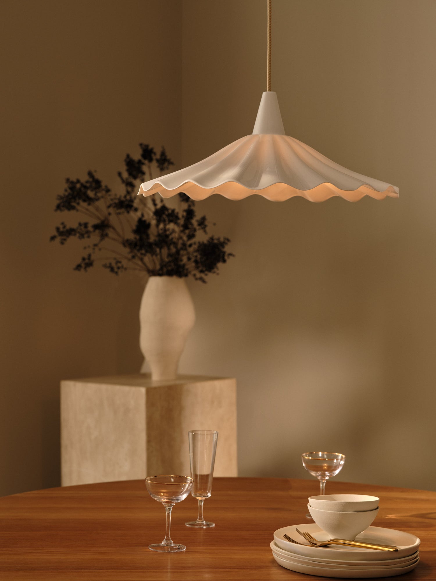 The Original BTC Christie Pendant is a finely crafted bone china light inspired by the fluid motion of ocean waves. Expertly molded, its distinctive shade captures a natural elegance that enhances any space. Available as either a rise & fall or pendant light, it features our signature sand and taupe braided cable paired with a bone china ceiling rose, combining refined craftsmanship with subtle design details for a striking, timeless finish.