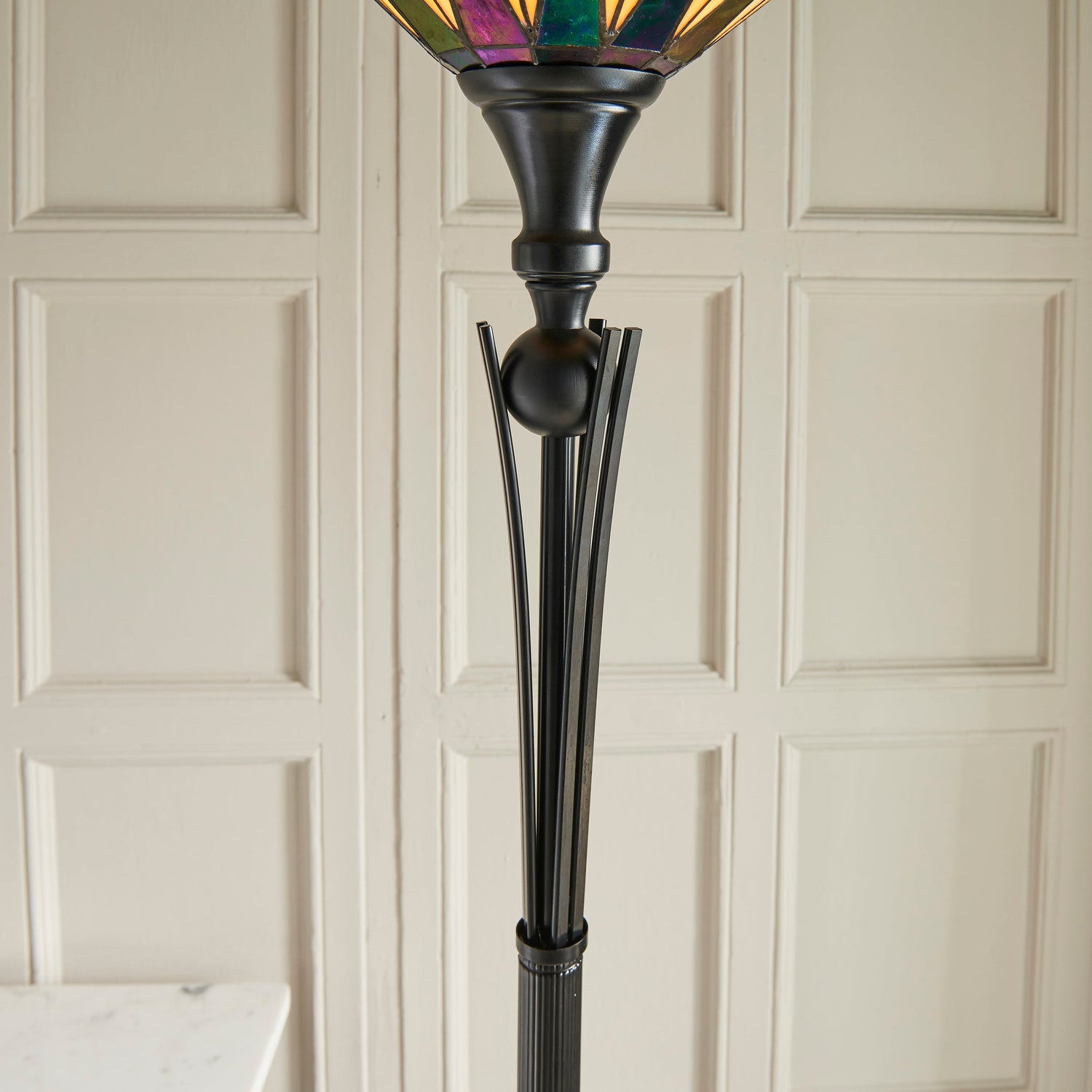 The eye catching Dark Star uplighter floor light is designed with iridescent black glass against pearly cream glass. Compatible with LED lamps and matching items available.