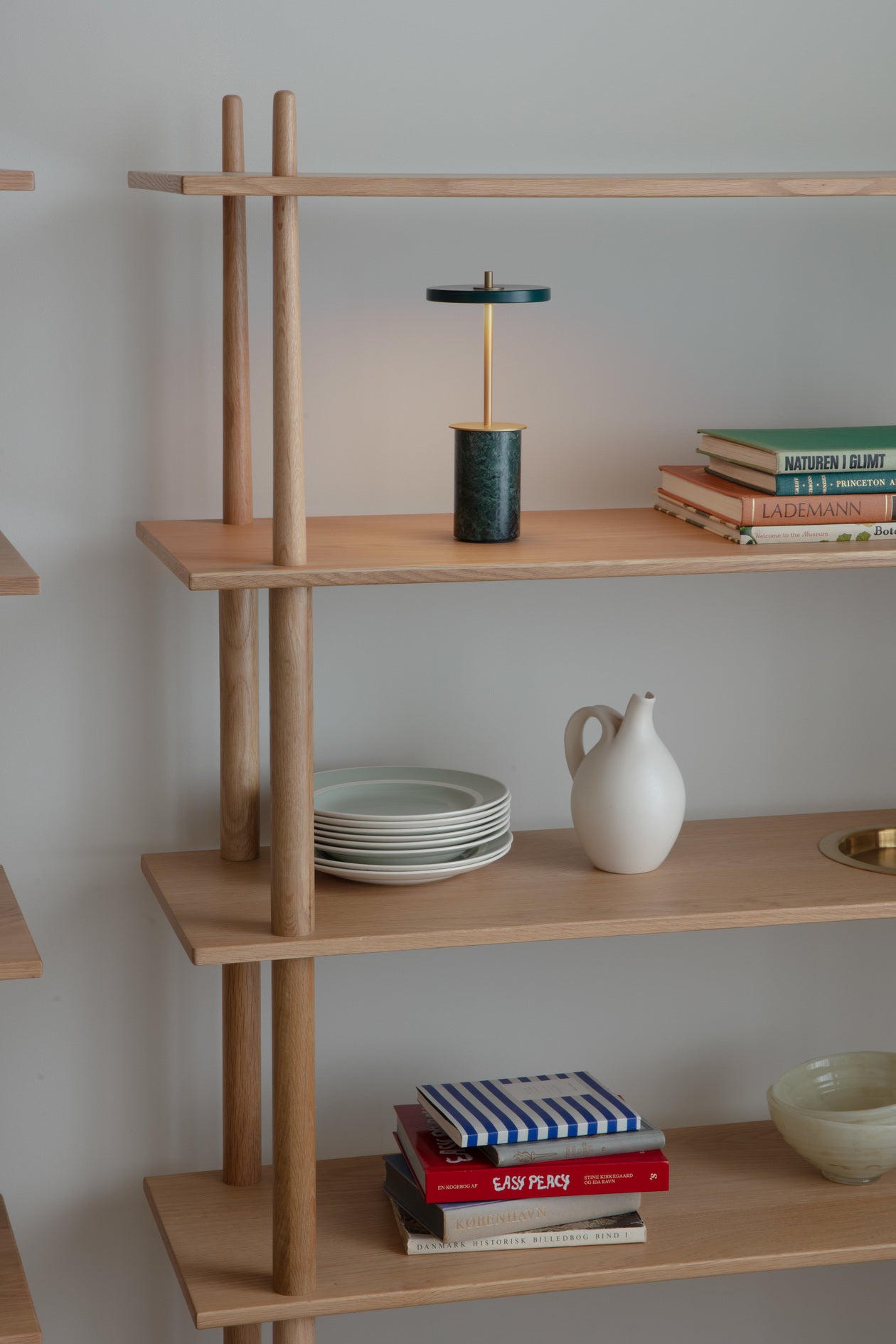 The sleek and stylish expression of the Asteria Move Mini is accompanied by a solid marble base, adding a classic touch to the design. Asteria Move Mini has four different light steps that allow you to adjust the light to the desired setting with a gentle touch on the base of the lamp.