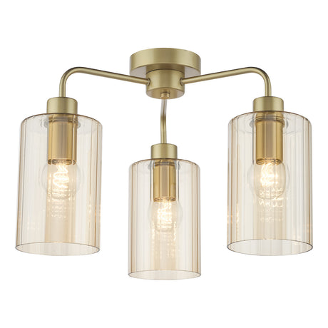 £79.00£114.00Unit price /Unavailable69% OFF | Save £35.00Dar Cognac 3 Light Semi-Flush Satin Gold and Champagne Ribbed Glass