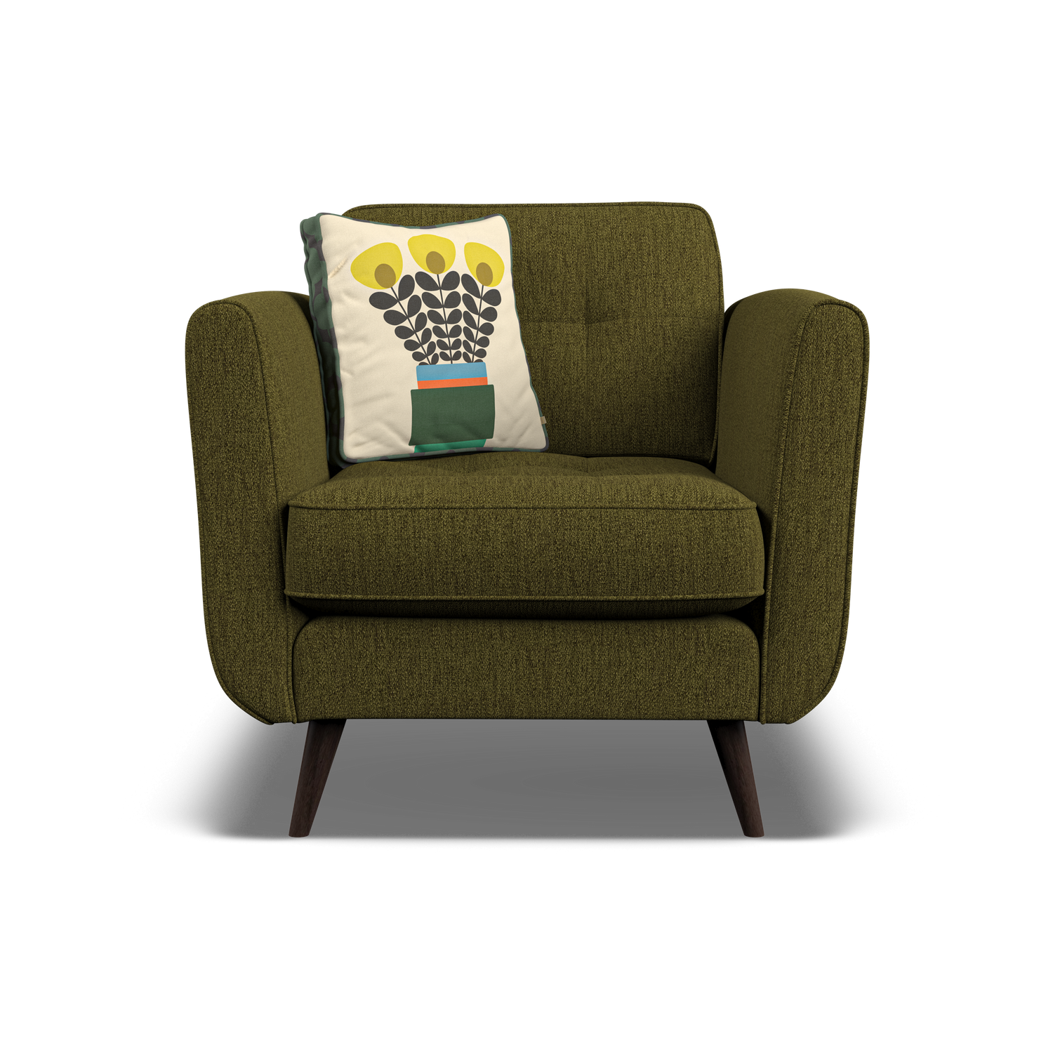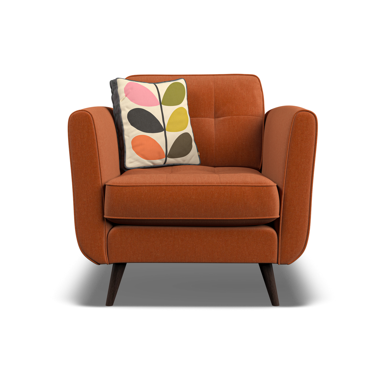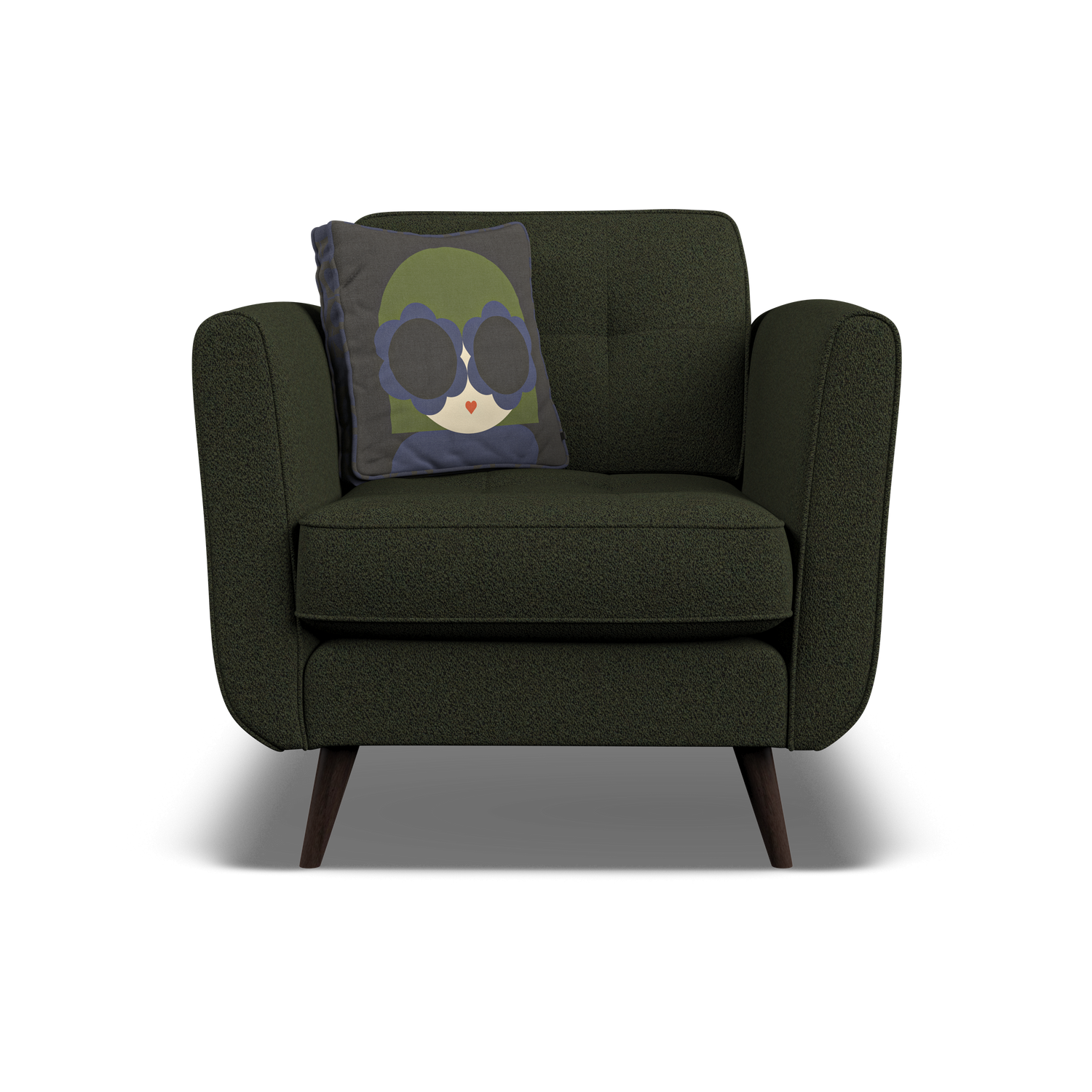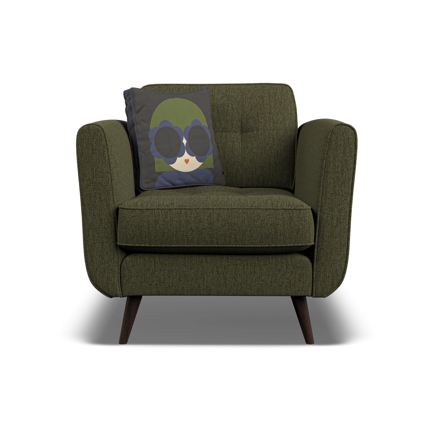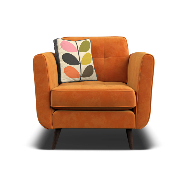 The Ivy chair has clean retro lines with soft rounded arms. The seat and back cushions have been finished with an elegant square quilted surface design and perfectly piped seams. A perfect combination of contemporary design and retro style. The feet colour can either be finished in Weathered Oak or Walnut stain.