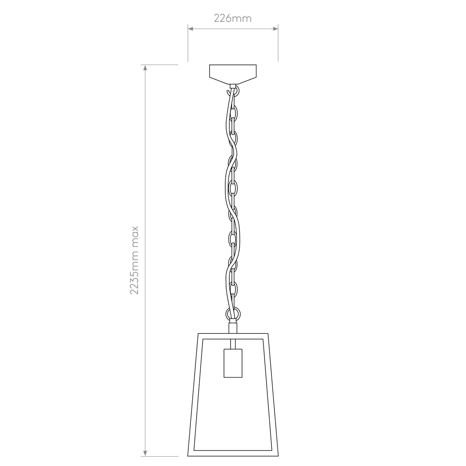 - Dimensions L x W x H: 226 x 226 x 2235 mm