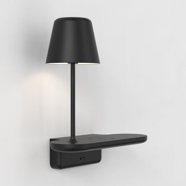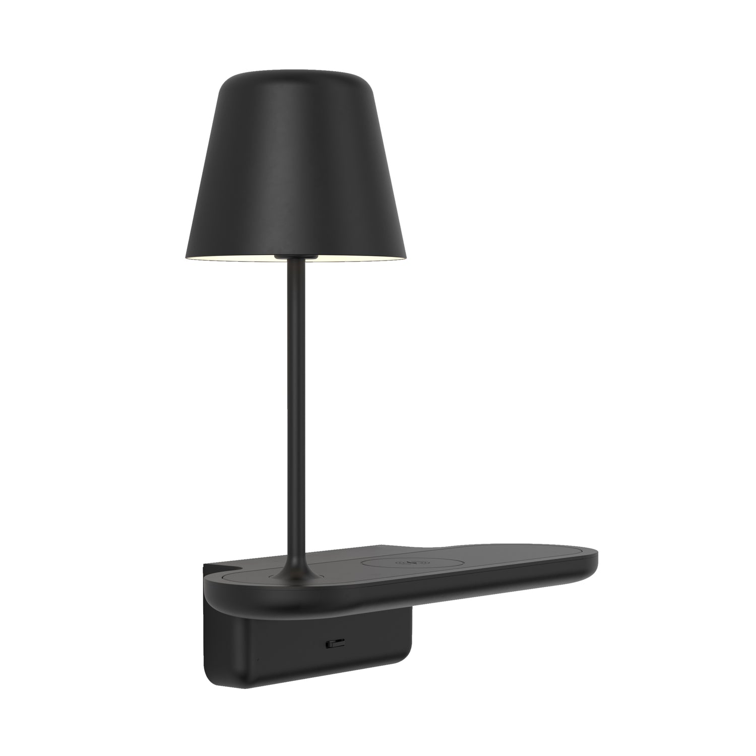 An ideal light for compact spaces, the Ito is a hybrid of a classic wall-mounted bedside lamp and an integrated wireless and USB docking station. Made from silicone and die-cast aluminium in a matt-white or matt-black finish, it has a modern, organic look and is designed to charge your device even when the light source is switched off. Created with flexibility in mind, Ito's shade can be positioned on the left or right during installation.