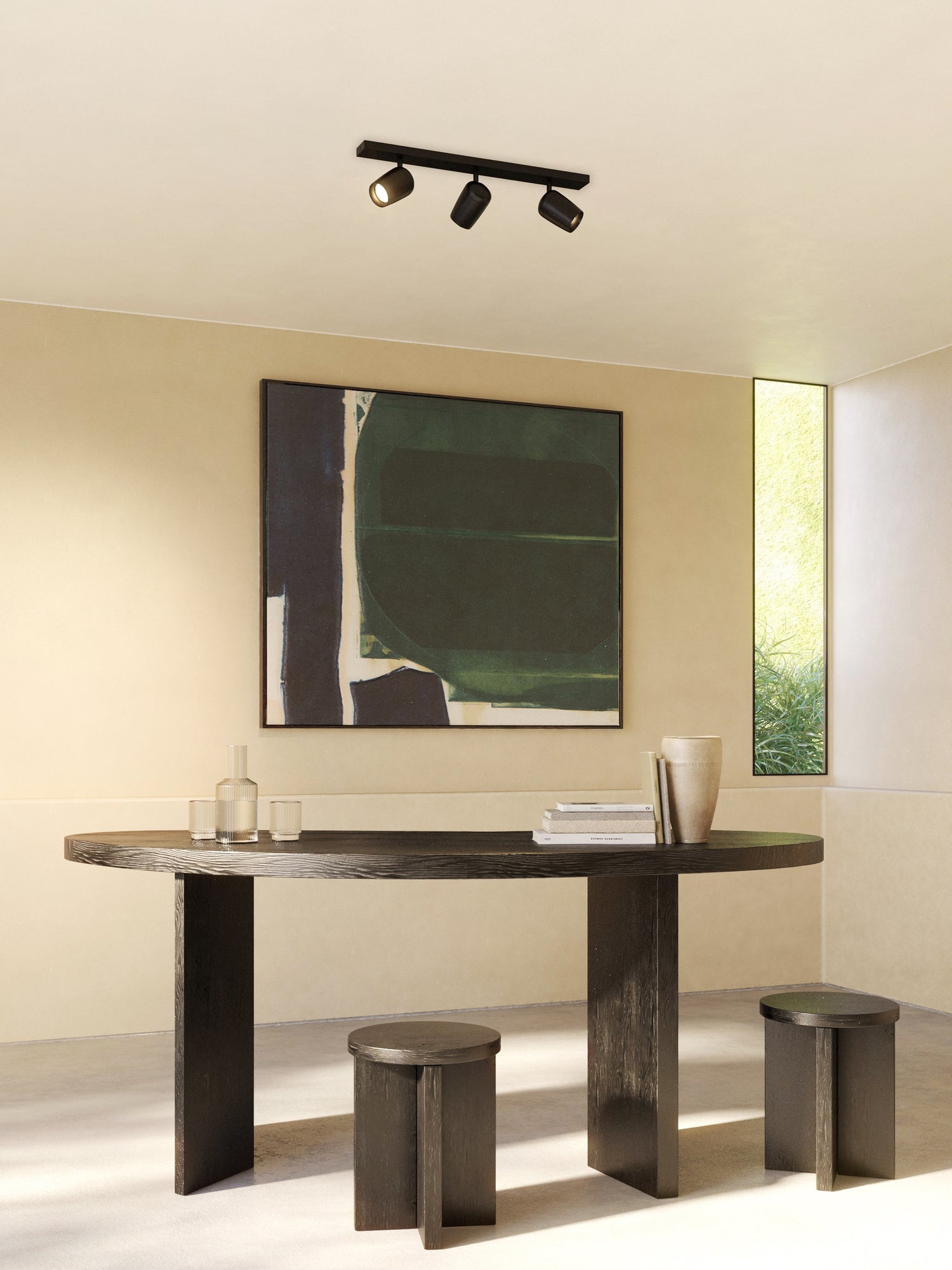 With its three curved spotlight heads arranged along a straight bar, Koto is the perfect choice for adding functional, multidirectional spotlighting to your home. Thanks to its versatile design, Koto's three spotlights can be adjusted individually to focus the light output as desired, making it an ideal lighting solution for kitchens, workspaces, living rooms and beyond.