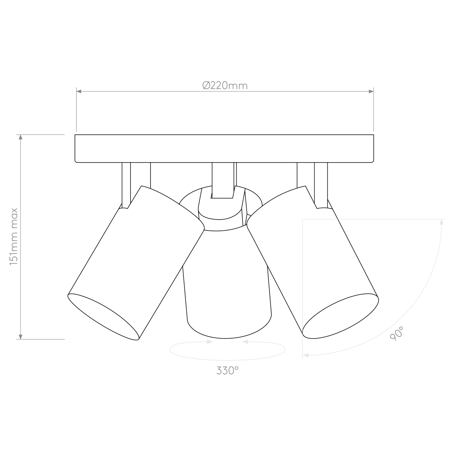 - Primary Recommended Bulb: 3 x 6W Max LED GU10