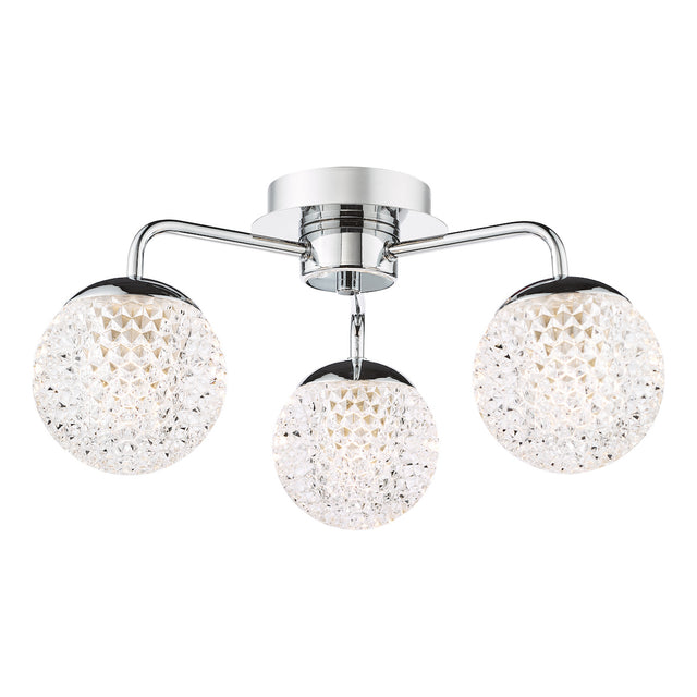 Dar Teva 3 Light Semi-Flush Polished Chrome and Faceted Acrylic IP44
