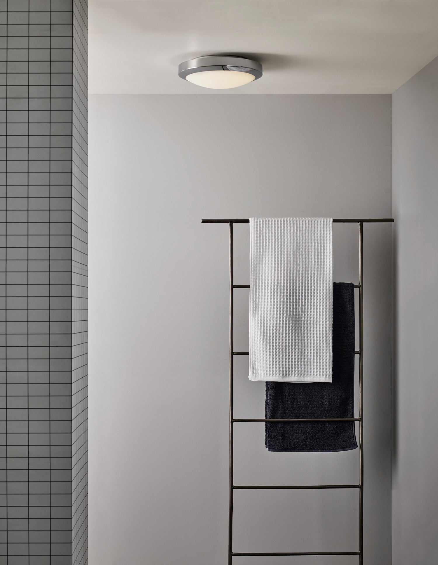 The Astro Dakota 300 Polished Chrome Bathroom Ceiling Light offers a sleek, flush-mounted design ideal for modern bathrooms. Its polished chrome finish provides a clean, reflective surface that complements various decor styles while resisting moisture and corrosion. This ceiling light delivers focused illumination, enhancing visibility and safety in your bathroom without occupying extra space. Easy to install and maintain, it combines durability with a refined aesthetic for practical yet stylish lighting.