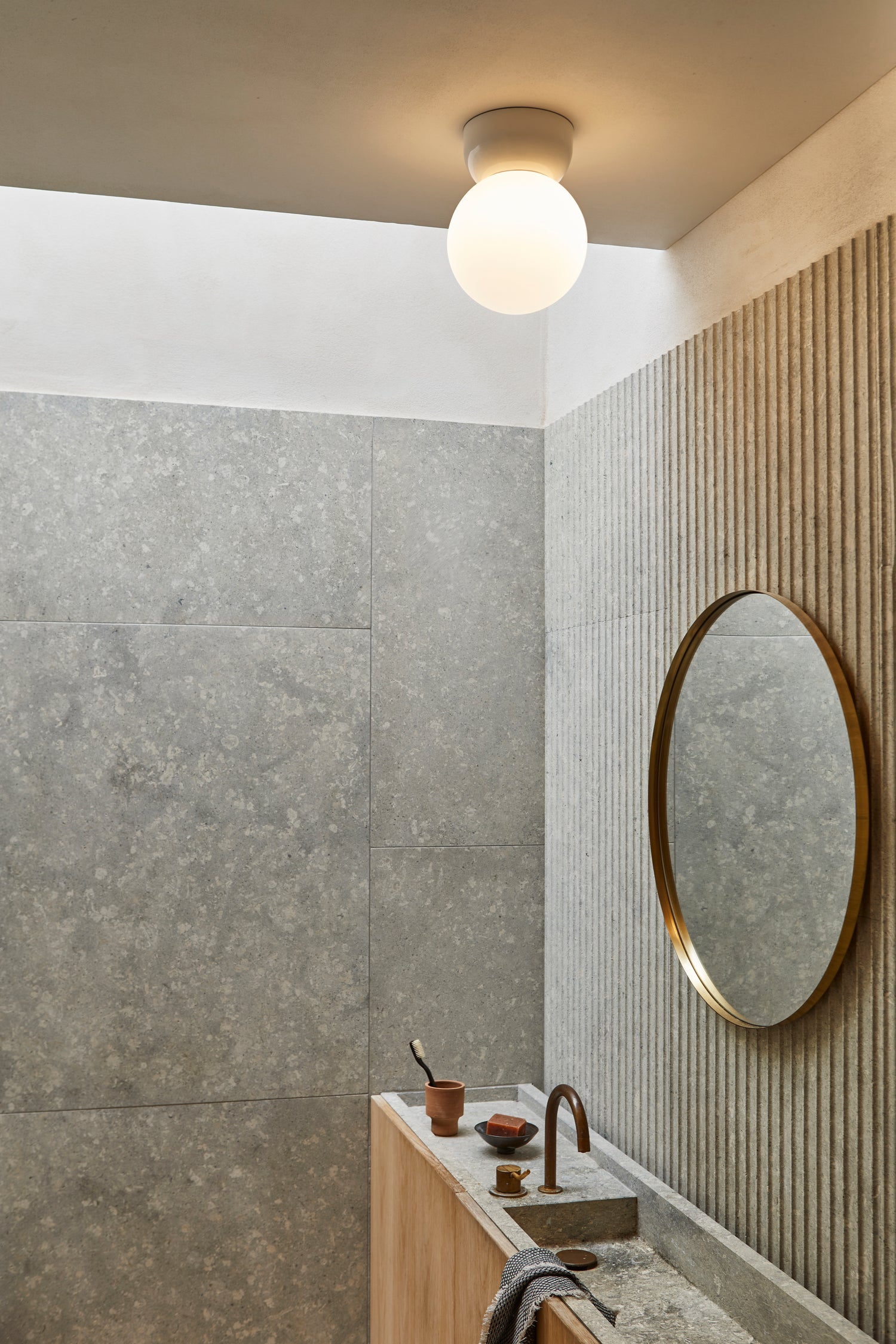 With its glossy white ceramic base and glass shade, Lyra adds comfortable overhead lighting to any modern bathroom. Its sleek design makes it an ideal choice for installation in other small rooms, such as hallways and storage spaces.
