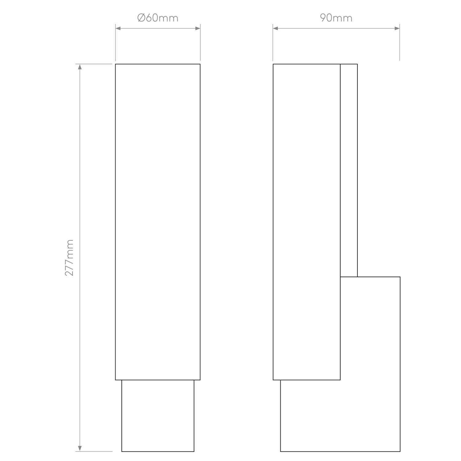 - Dimensions L x W x H: 90 x 60 x 277 mm