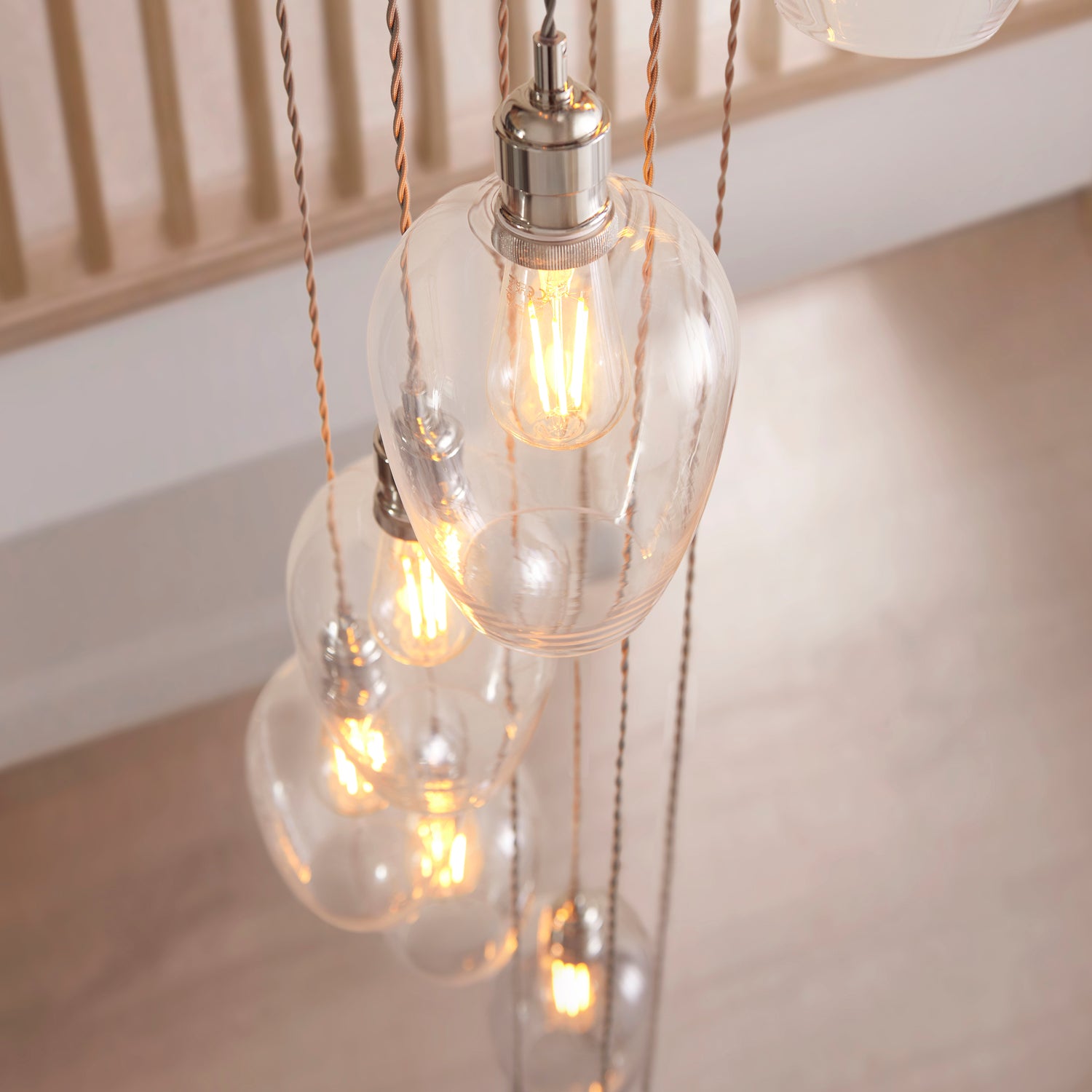 Amos Lucid Bright Nickel & Clear Glass 13 Light Cascade