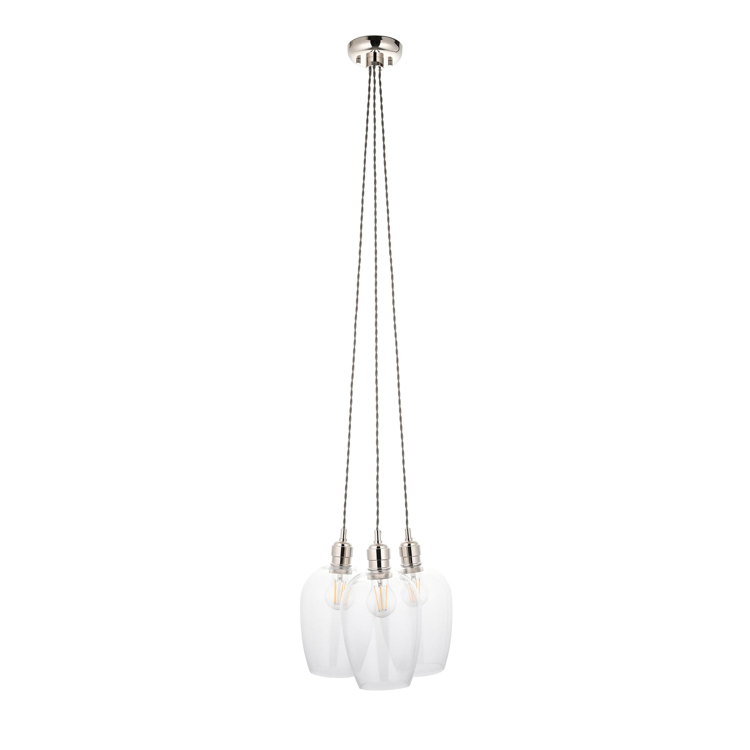Amos Lucid Bright Nickel & Clear Glass 3 Light Cluster