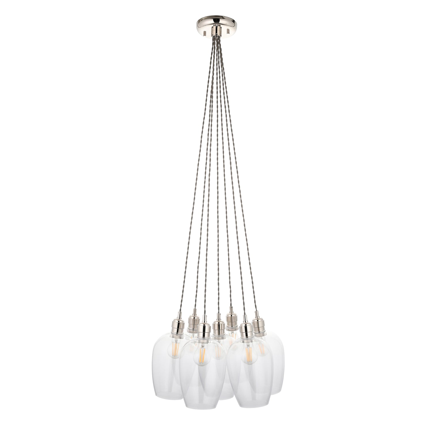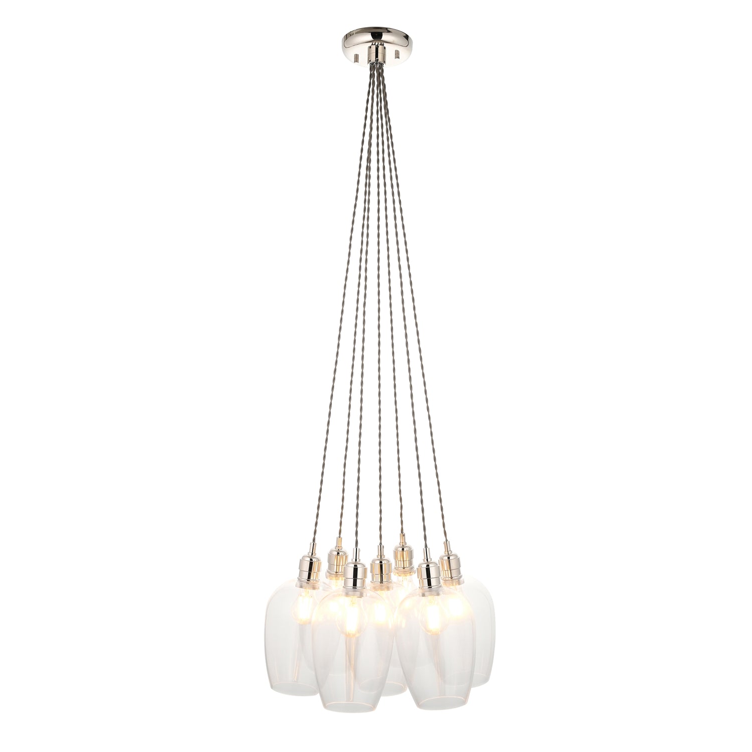 Amos Lucid Bright Nickel & Clear Glass 7 Light Cluster