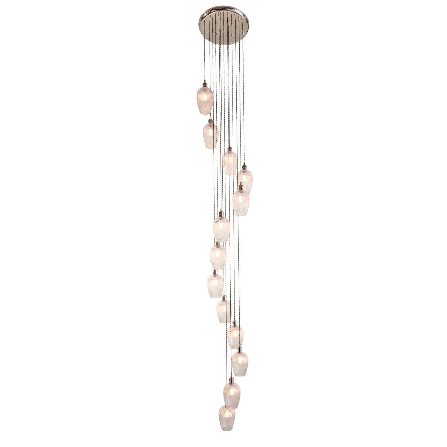 Make a striking statement with this 13-light cascade pendant, engineered to transform hallways and stairwells into architectural focal points. The cascading design creates dynamic visual interest whilst distributing light evenly across vertical spaces. Crafted in bright nickel with clear ribbed glass, this fixture combines contemporary elegance with versatile styling capability. The ribbed glass diffuses light beautifully whilst adding textural depth to your interior scheme. Designed for seamless coordination with complementary pieces in the collection, this pendant adapts effortlessly to modern, transitional, and traditional aesthetics alike.
