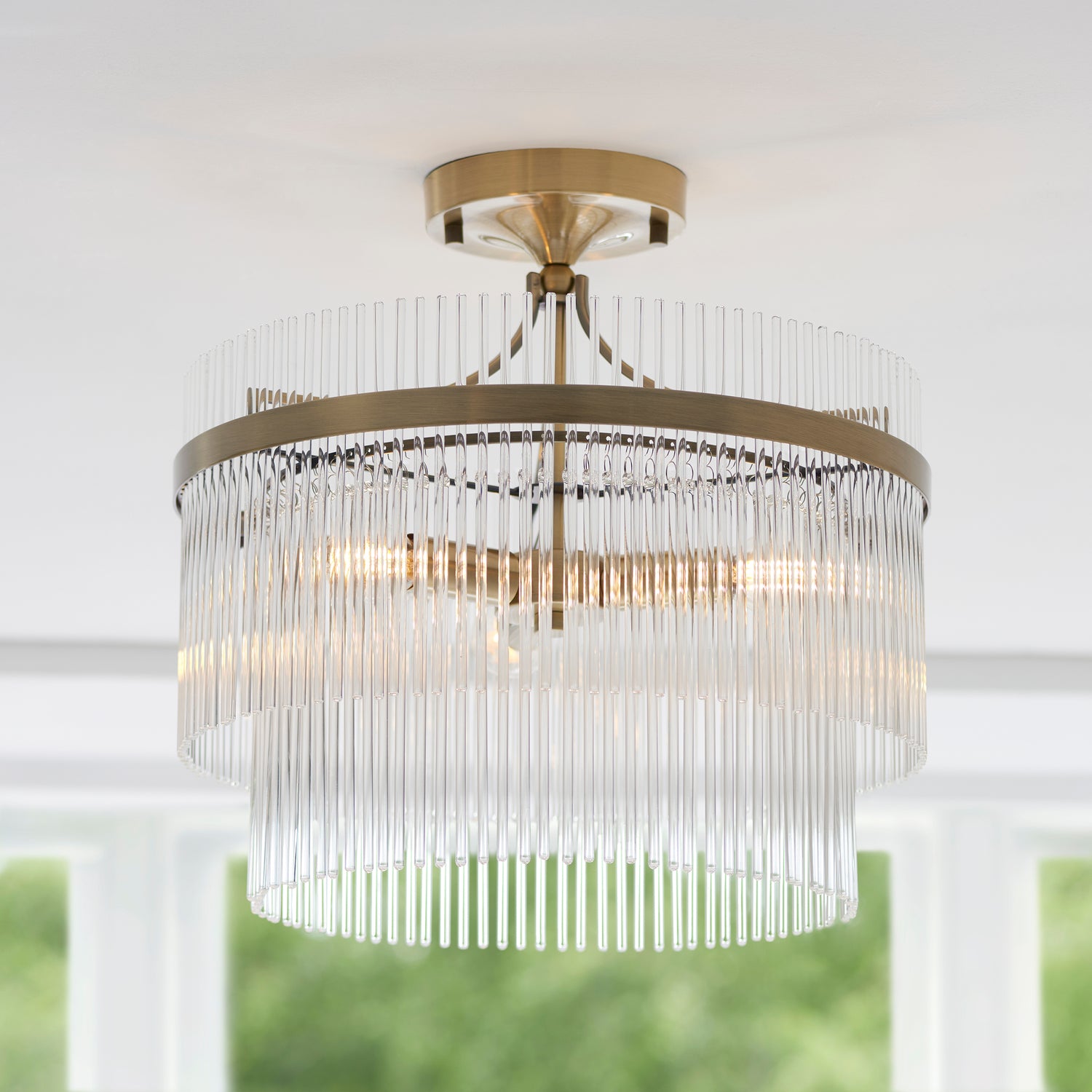 Endon Marietta 3lt Semi Flush Antique Brass & Glass