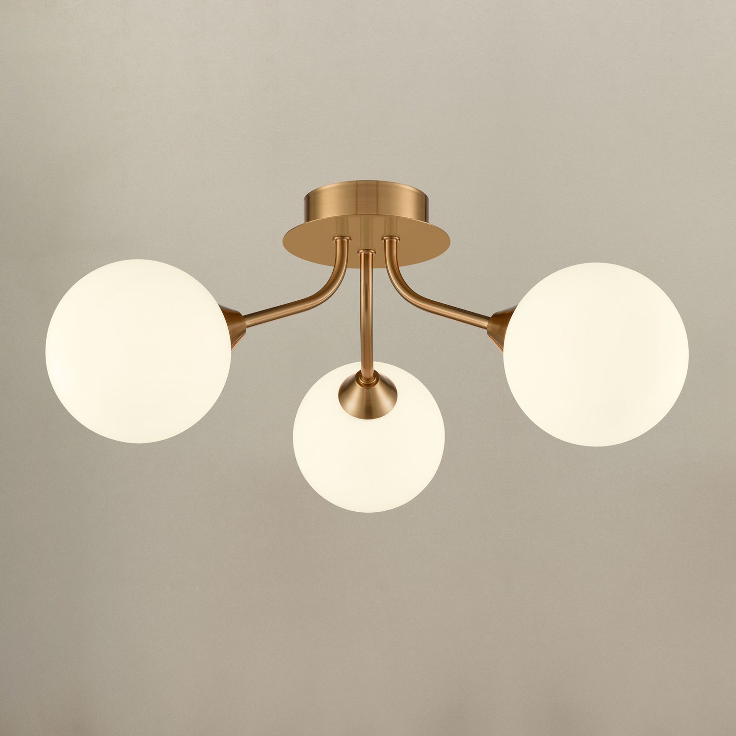 The Cosmic 3 light fitting in antique gold with matt opal glass is a striking addition to any home, combining clean lines with high-quality craftsmanship. This light fitting has been carefully designed to deliver an even distribution of light while serving as a subtle design feature. Perfect for use in living rooms, dining areas, bedrooms, or hallways, it creates an ambient glow ideal for both contemporary and classic interiors. Finished to an impeccable standard, it combines timeless aesthetics with practicality, making it an excellent choice for a variety of settings. With its distinctive design, it’s sure to become a focal point in your space.