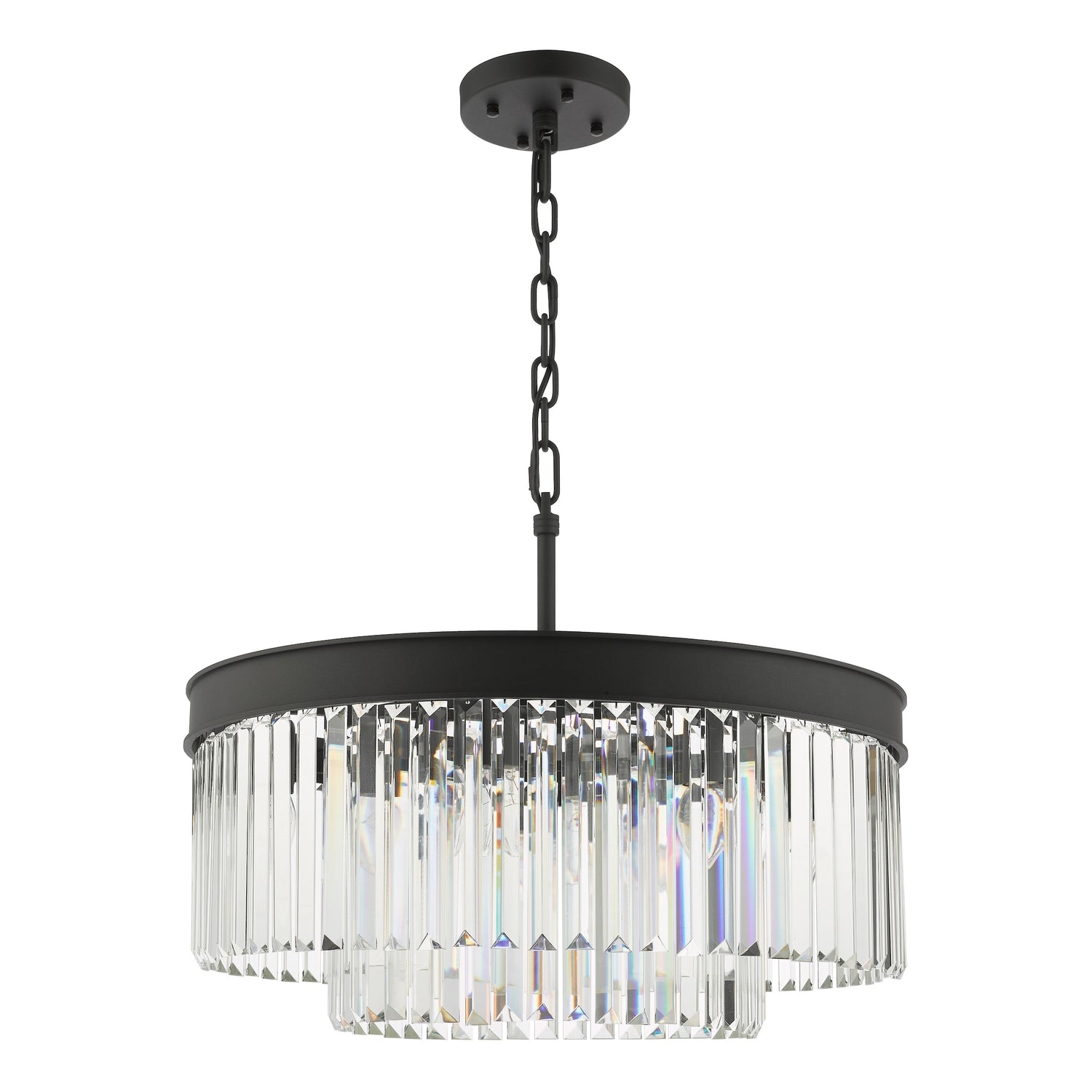 Design Excellence: The 60cm chandelier makes a perfect statement light in most living and dining rooms. The combination of sparkling faceted crystal and textured anthracite creates a sophisticated aesthetic that works beautifully in contemporary interiors, particularly those featuring on-trend black metalwork.