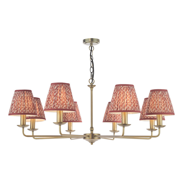 Dar Favian 8 Light Pendant Matt Bronze With Esther Red Shade