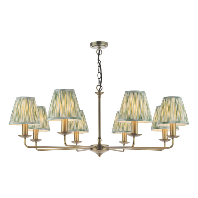 Dar Favian 8 Light Pendant Matt Bronze With Ikat Green Shade