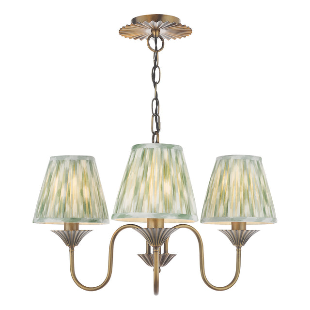 Dar Lydian 3 Light Pendant Antique Bronze With Ikat Green Shade