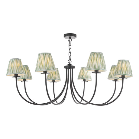 Dar Becca 8 Light Pendant Matt Black With Ikat Green Shade