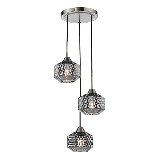 Dar Fabrienne 3 Light Cluster Pendant Satin Nickel and Smoked Glass