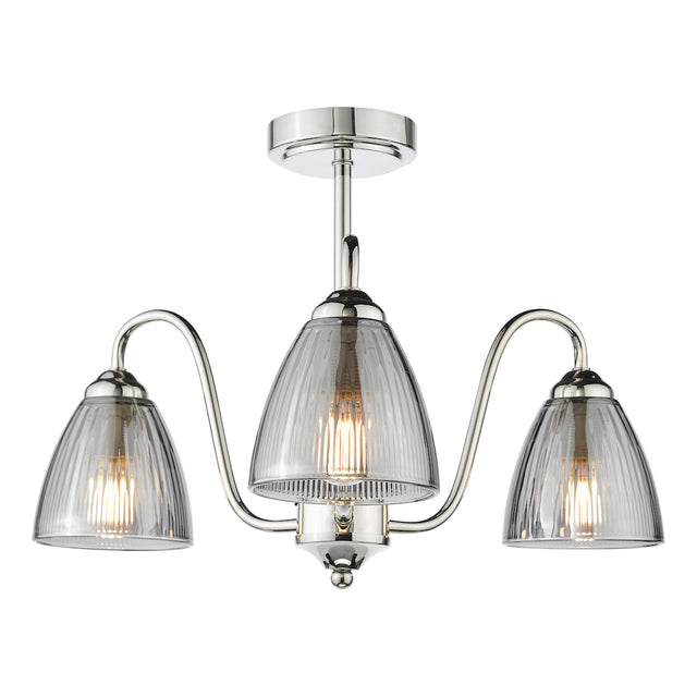 Dar Glynis 3 Light Semi-Flush Polished Nickel and Smoke