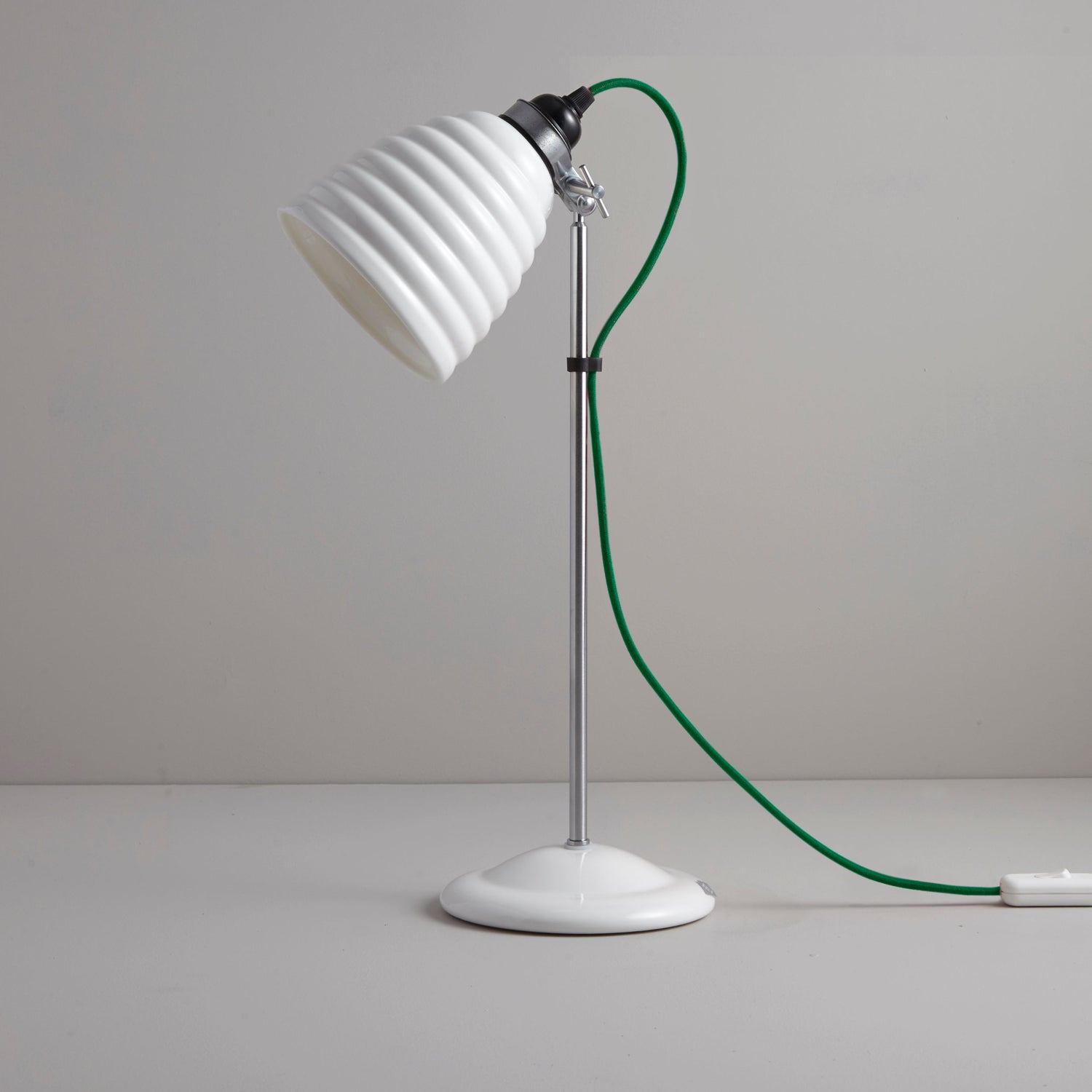 The Hector Bibendum, designed by Sir Terence Conran to celebrate Original BTC's 21st birthday and the Michelin building's centenary, is a fresh take on our Hector. Featuring a white, rippled shade in bone china and colourful cotton braided cable.